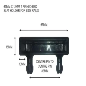 Also known as ‘end caps’, our Heavy-Duty 63mm Sprung Slat Holder products are used on the side rails of metal bed frames, which have pre-drilled holes that accommodate the two pins that then click into the framework. This model houses a heavy-duty bed slat 63mm x 12mm, a thicker design for more substantial support.